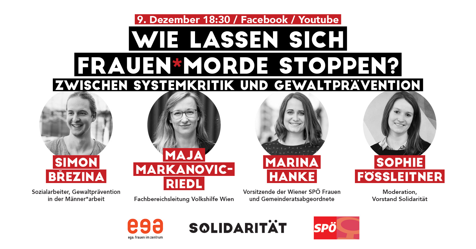 Wir haben dieses Thema anläßlich der “16 Tage gegen Gewalt an Frauen” beleuchtet. Maja Markanovic-Riedl berichtete als ehem. Leiterin einer Einrichtung für wohnungslose Frauen von der Praxis und den damit verbundenen Schwierigkeiten. Mit Marina Hanke, Vorsitzende der Wiener SPÖ Frauen diskutierten wir die politischen Spielräume, die zur Gewaltprävention gesetzt werden können und welche in Wien bereits umgesetzt sind. Simon Brezina erzählte als Experte für kritische Männerarbeit welche Rolle die Auseinandersetzung mit Männlichkeit und Rollenbildern in der Prävention haben kann. Die Veranstaltung wurde in Kooperation mit ega: frauen im zentrum und den Wiener SPÖ Frauen durchgeführt.